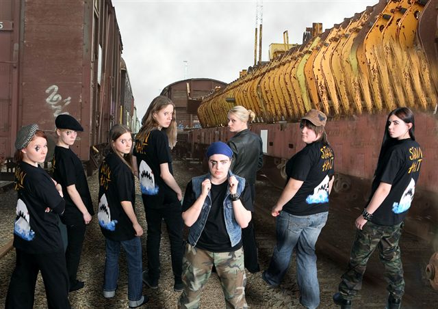 Hurjat Stadin hait tällä kertaa hymyssä suin. Ulrika Ekström kuvassa ylhäältä päin neljäs vasemmalla ja Anne Arrenius ylimpänä oikealla.